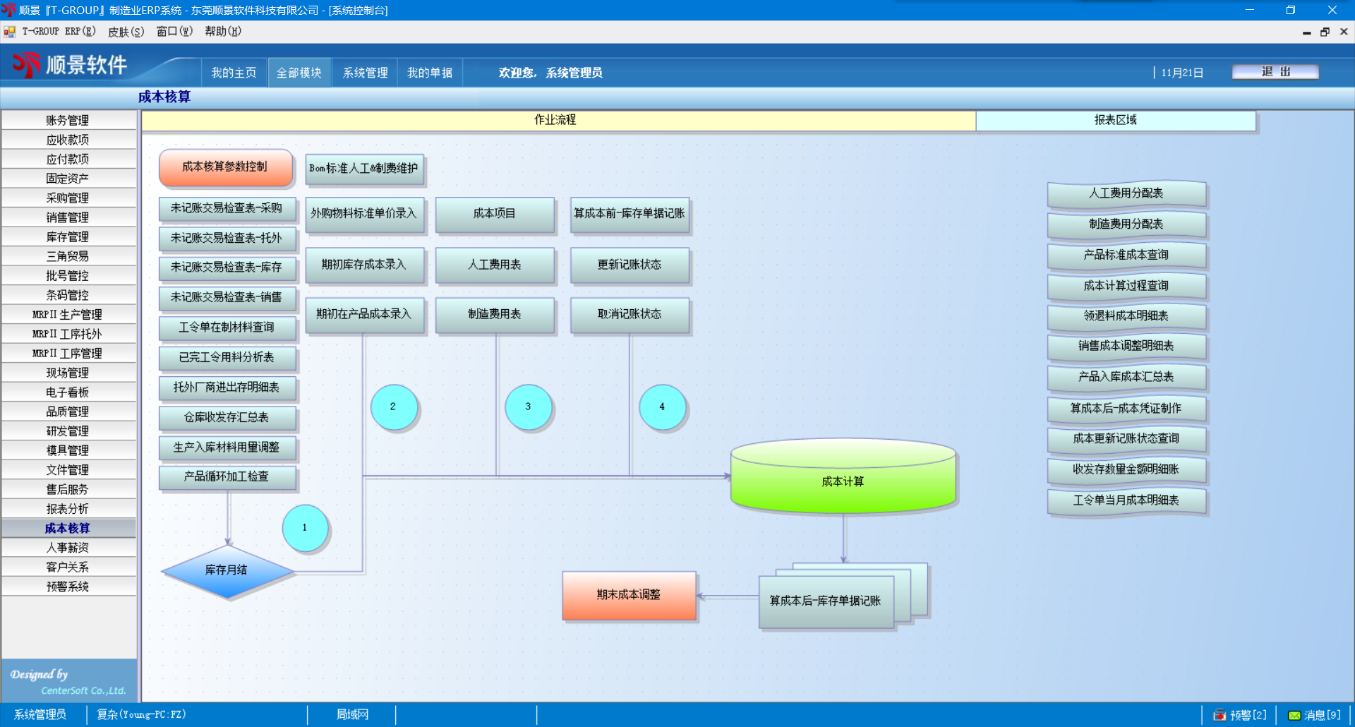 1. 每月在前部单据稽核完成后,点击一下“计算成本”按钮,所有成本计算工作皆由系统自动完成;